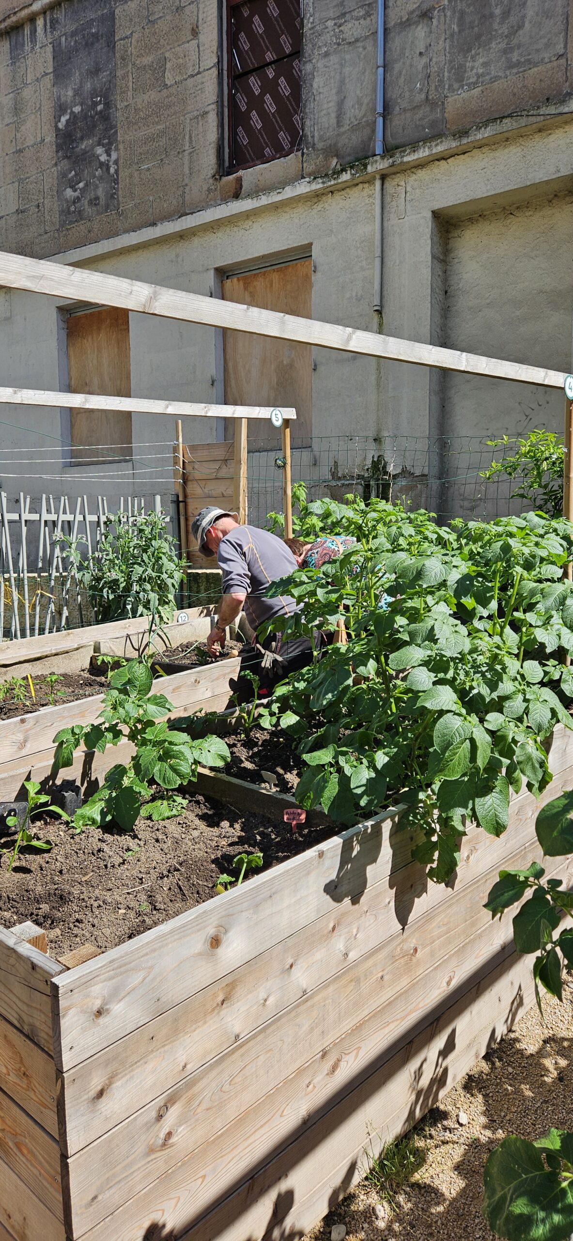 Bacs potagers surélevés, apport de terre végétale professionnelle, création du cabanon, création des zones de fleurissement et d’amélioration du carde de vie des habitants, calcul et fourniture du bon nombre d’outils, rencontre des partenaires et accompagnement du jardin auprès d’un dizaine d’habitants impactés dès le premier mois !